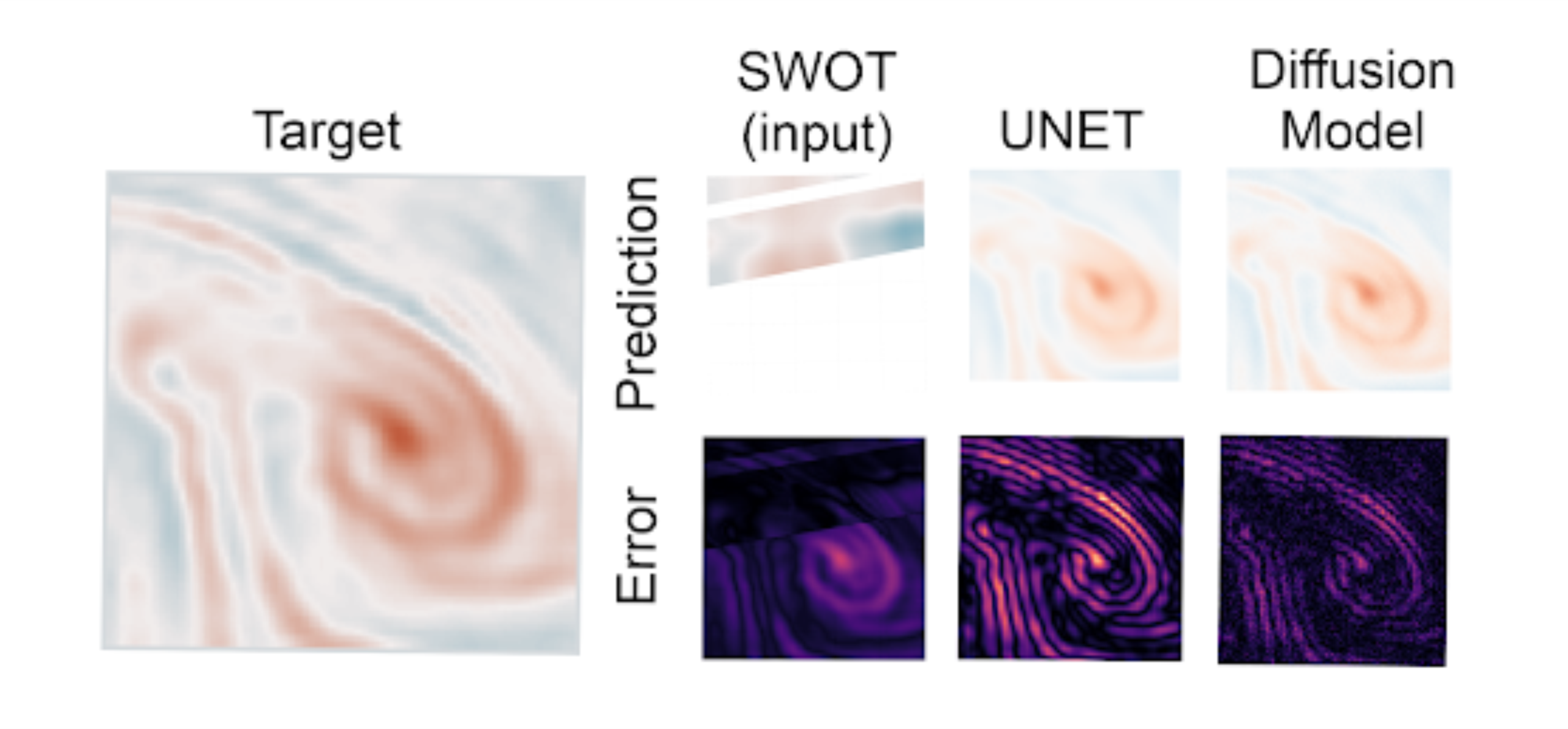 Modeling and predicting ocean currents at spatial scales below 50 km is essential for understanding key ocean processes such as biogeochemical fluxes and nutrient transport. The Surface Water and Ocean Topography mission addresses long standing observational limitations by providing high resolution sea surface height measurements through radar interferometry. However, instrumental noise and its amplification during differentiation pose significant challenges for deriving reliable geostrophic velocities and vorticity fields.